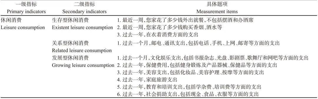 ,不包含用于满脚根基心理需求的消费行为。正在此根本上,本文连系Alderfer的“-关系-成长”需要理论(existence,relatedness and growth theory,下文简称ERG需求理论)对休闲消费进行根基层级划分[60]。ERG需要理论是以马斯洛需求条理理论为根本,通过更接近现实经验的研究,获得的人本从义需要理论。人们共存正在3种焦点需要,即需要、关系需要和成长需要[60]。连系休闲消费定义取ERG需要理论,本文对被注释变量的拔取进行如下设定。起首,根据休闲消费定义,提取出受访者回覆CHARLS问卷中“家户糊口收入”的相关题项,如“比来一周,您家花了几多钱外出就餐,不包罗摆酒和办酒菜”“比来一周,您家花了几多钱采办喷鼻烟、酒水等”等,共计10个分项。其次,将上述题项按照ERG需要理论的需要类别进行划分,构成休闲消费的3个维度,别离为型休闲消费、关系型休闲消费和成长型休闲消费,具体分项如表1所示。最初,将3类休闲消费进行加合计算,获得过去一年的休闲消费总量。需要申明的是,本文对上述休闲消费目标同一进行了以年度为单元的消费量换算,并进行对数化处置。表1 休闲消费的类型划分。
