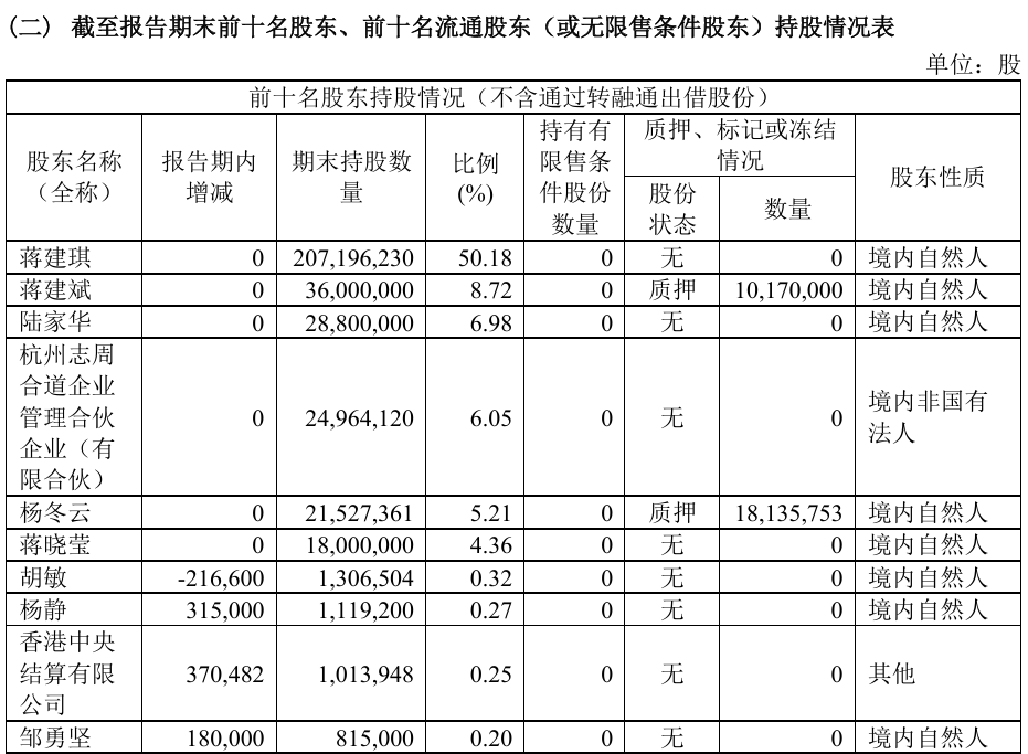 喷鼻飘飘2025年半年度演讲显示,喷鼻飘飘当前三大股东别离为蒋建琪、蒋建琪弟弟蒋建斌和蒋建琪老婆陆家华;蒋建琪、陆家华、蒋建斌和蒋晓莹共计持有喷鼻飘飘70。24%的股份。